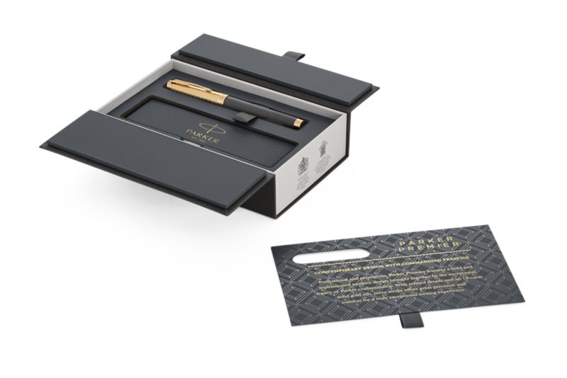 Ручка роллер Parker Premier Storm Grey GT от официального дилера Parker в Мытищах. Вы можете дополнительно заказать гравировку, которая подчеркнет Вашу оригинальность и придаст памятность статусному подарку. Все ручки Паркер поставляются в фирменном футляре.